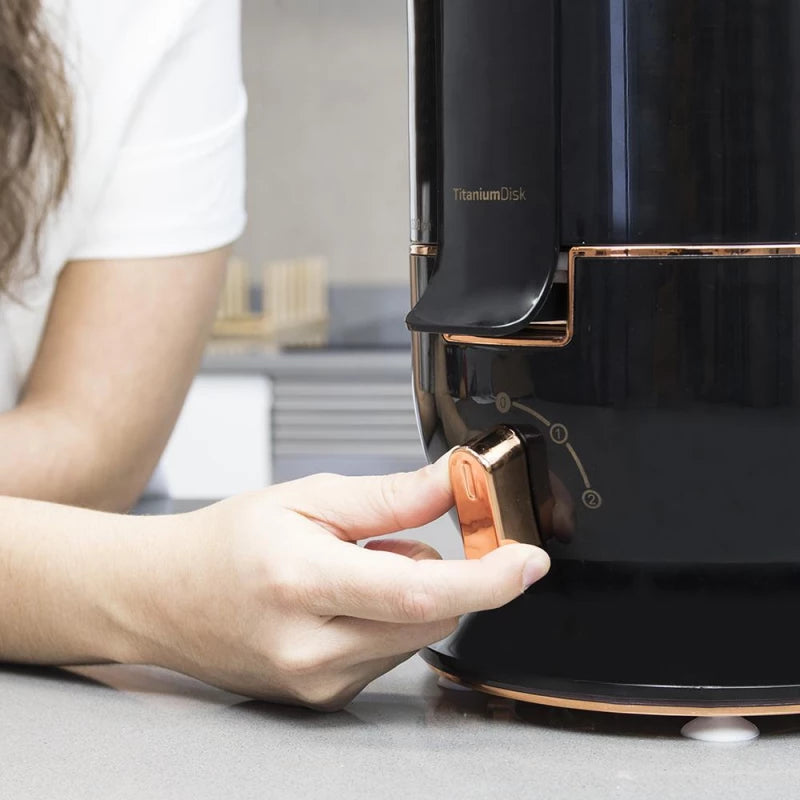 مزود بقرص مطلي بالتيتانيوم وسرعة دوران تبلغ 19,000 دورة في الدقيقة ، مما يُسهّل استخلاص العصير ويزيد من ثراءه بأقل جهد.