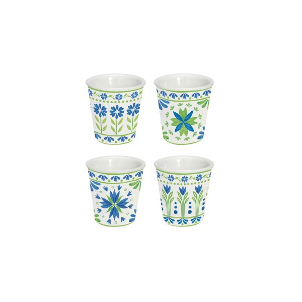 طقم 4 فناجين قهوة من مجموعة زهور إيزي لايف مع صندوق - أزرق وأخضر