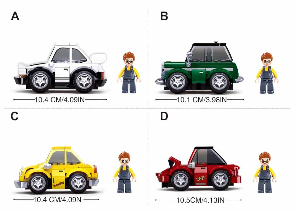 مصنوعة من بلاستيك متين وآمن للأطفال ، مثالية للعب الفردي أو الجماعي، ويمكن دمجها مع مجموعات Sluban الأخرى للحصول على مشاهد سباق سيارات مثيرة .