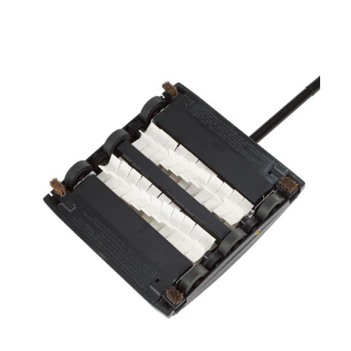 Our best manual sweeper! Two rows of rubber blade rotors allow for both wet and dry debris cleaning. The soft rubber wheels conform to floor surfaces. Rubber blades are removable and dishwasher safe (top rack only). Features dual debris collectors with viewing window and a galvanized steel body construction. 1-Year Commercial Warranty.