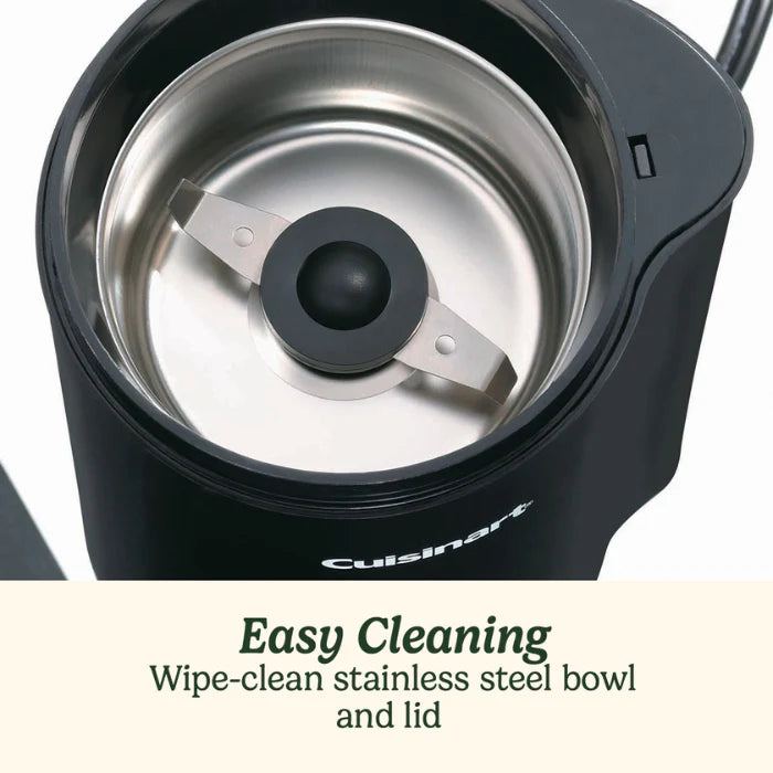 Compact Storage and Effortless Cleaning: Designed for convenience, the grinder's compact size and integrated cord storage make it easy to pack away neatly. Plus, the wipe-clean stainless steel bowl and lid ensure quick, hassle-free cleaning after every use