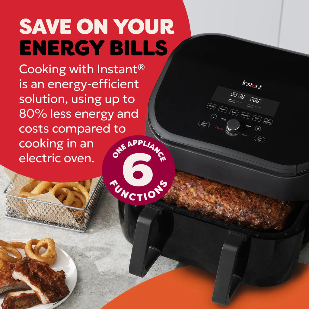 Introducing the Instant Pot Air Fryer with revolutionary VersaZone™ technology. This isn't just an air fryer; it's a dynamic, high-capacity appliance designed for maximum kitchen efficiency. Easily manage large family meals or simultaneously prepare two different dishes with precision and ease.