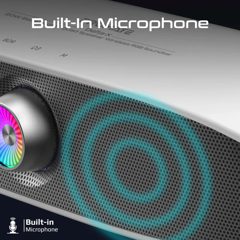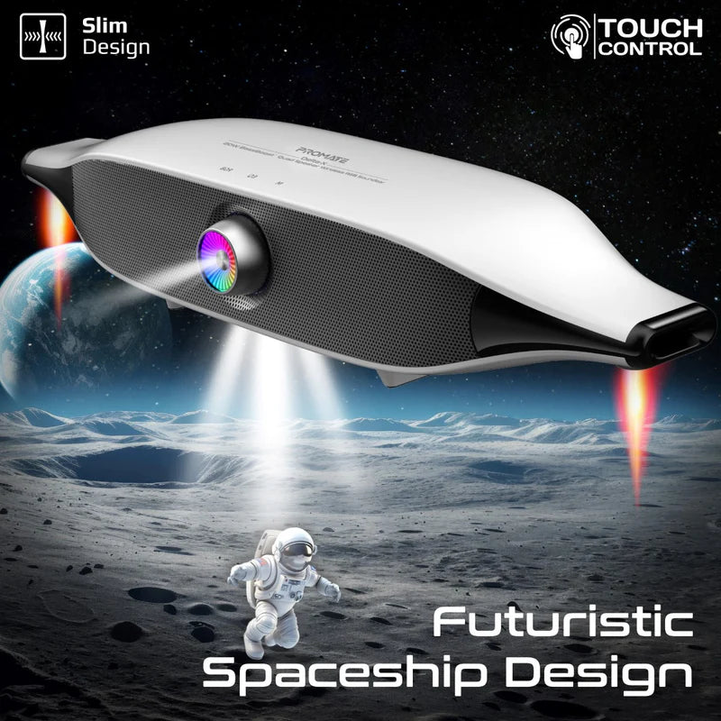 Introducing Promate's Delta-X, a superior quality TWS speaker that delivers powerful stereo sound with a 20W speaker output. Designed with a futuristic, sleek spaceship aesthetic, it features 12 dynamic RGB lighting modes and two "landing lights" on the sides that respond to voice levels, creating a visually immersive experience. The Delta-X is equipped with dedicated dual bass and dual treble drivers, offering three EQ modes for a personalized audio experience. Its built-in omnidirectional hands-free microphone facilitates seamless hands-free communication, whether during video games or conference calls. The robust 6400mAh lithium-ion battery provides 20 hours of playtime with RGB lighting or 30 hours without, ensuring long-lasting enjoyment. With efficient power usage, a wireless operating range of up to 20 meters, support for USB flash drives up to 256GB, and a 20W USB-C input for fast charging, the Delta-X is the ultimate portable speaker for both audio and visual enjoyment. Audio that is out of this world! Combining style, performance, and versatility, the Delta-X is the pinnacle of innovation in portable audio.