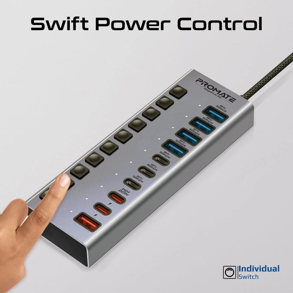 Promate GegaHub-5G 10-in-1 USB-C Multiport Hub with 5Gbps Data Transfer