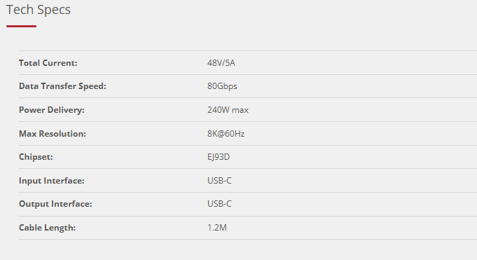 - Power Delivery: 240W max