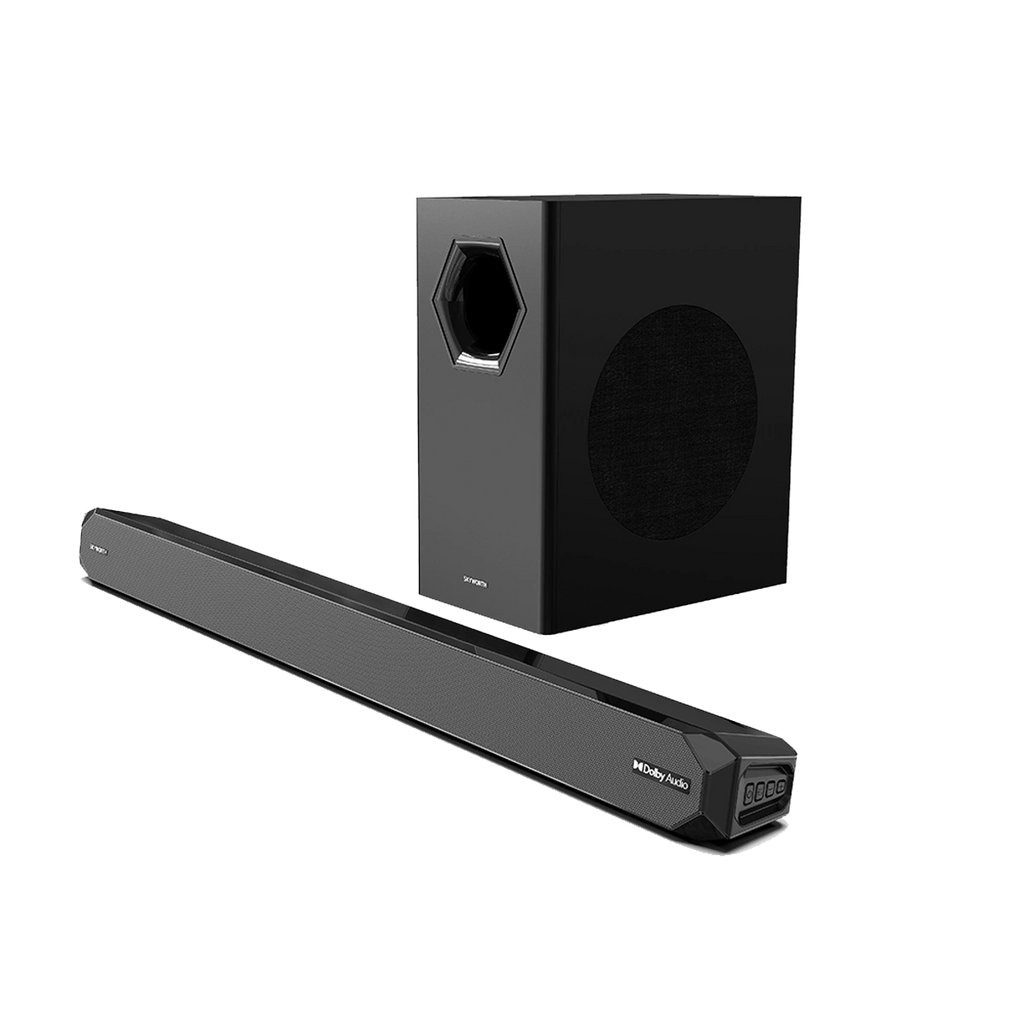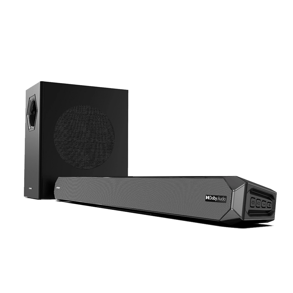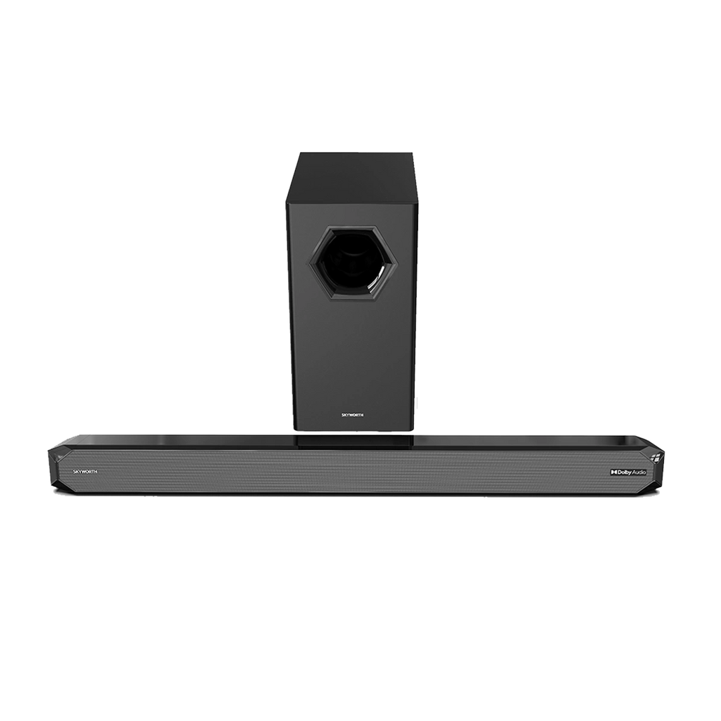 Enhance your home entertainment experience with the Skyworth 2.1 Channel Soundbar, featuring Dolby Audio and a wireless subwoofer for deep and immersive sound.