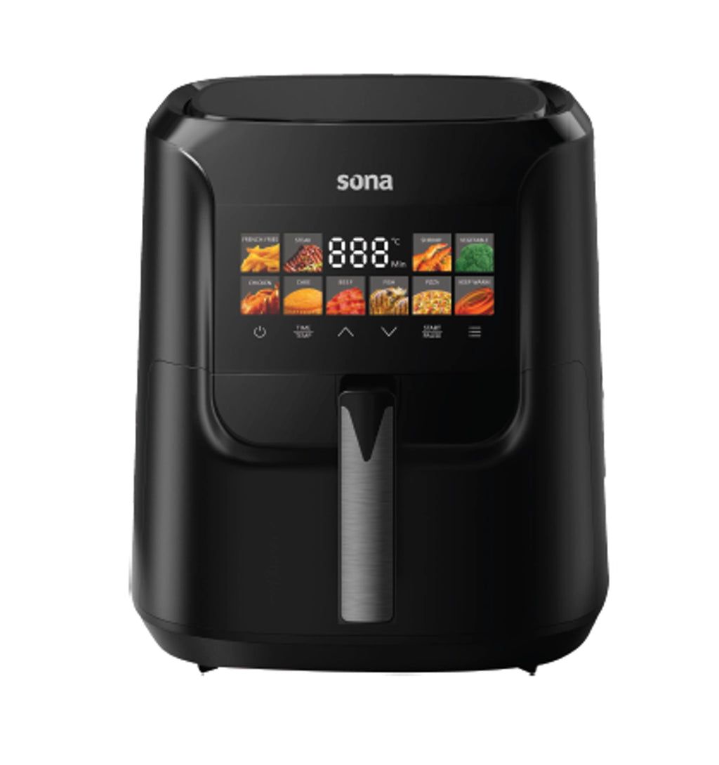 Enjoy healthier and delicious meals with the Sona 8L Air Fryer, designed for families and large portions with up to 90% less oil.