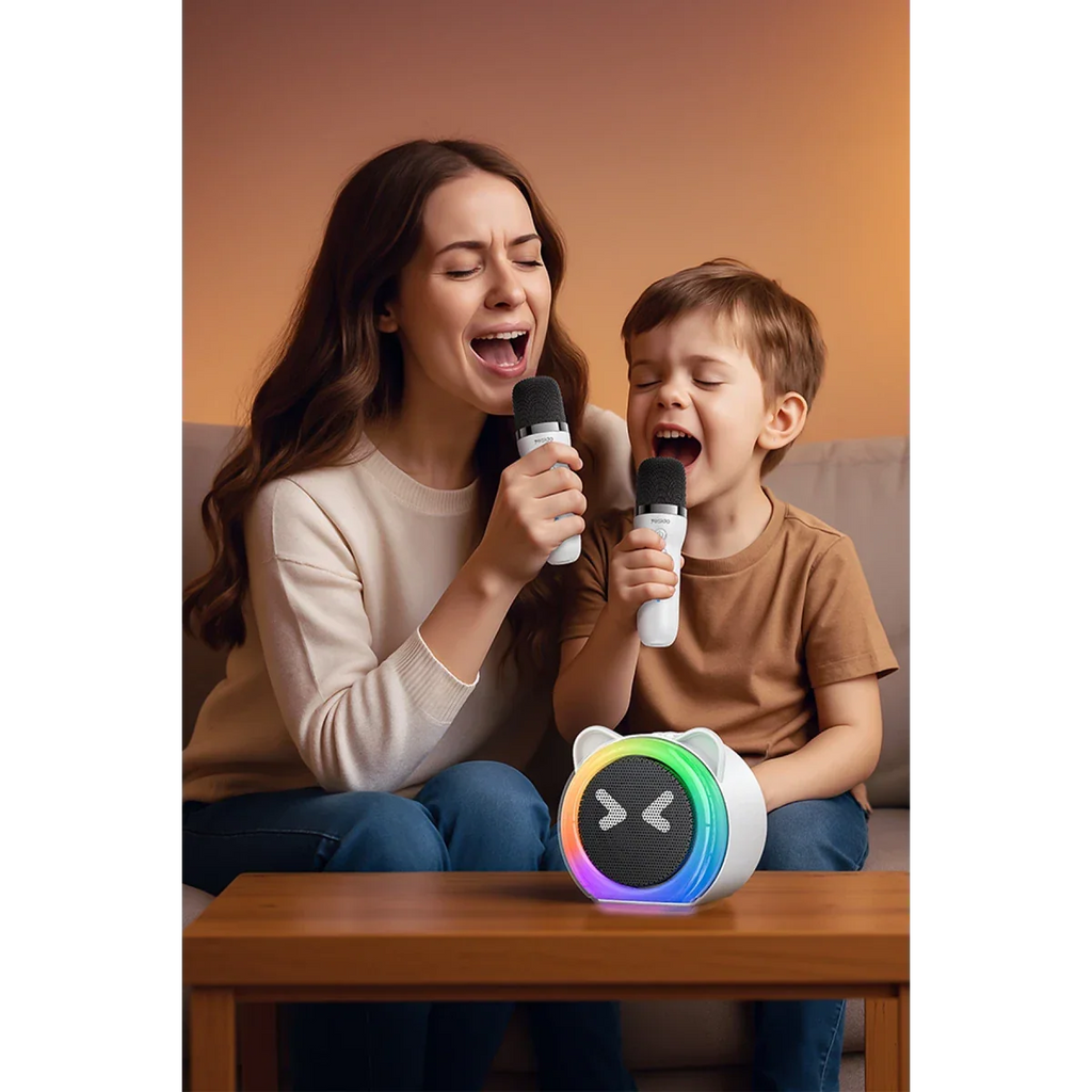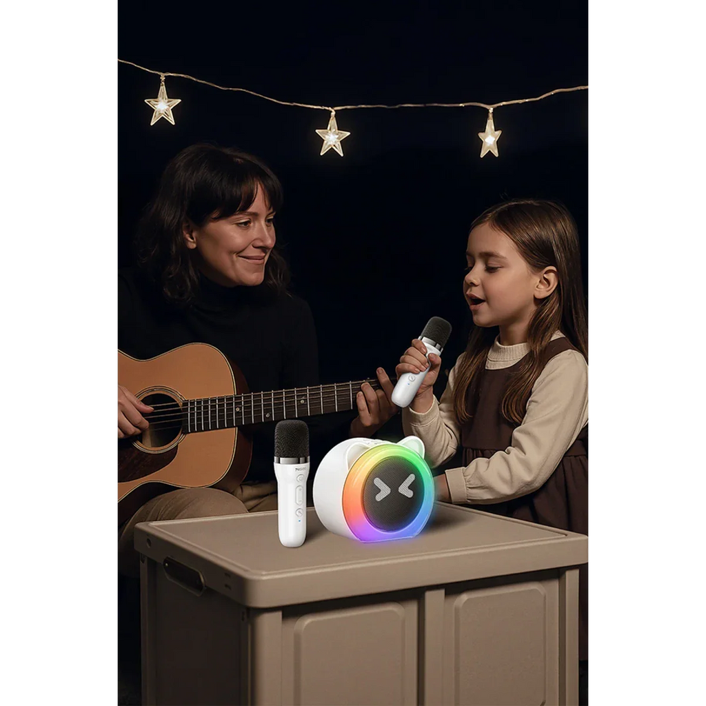 The set includes a wireless microphone and speaker, both designed with durable ABS and metal mesh construction. Enjoy crystal-clear sound across a wide frequency range and up to 10 meters of wireless freedom. Perfect for family gatherings, parties, or solo practice sessions.