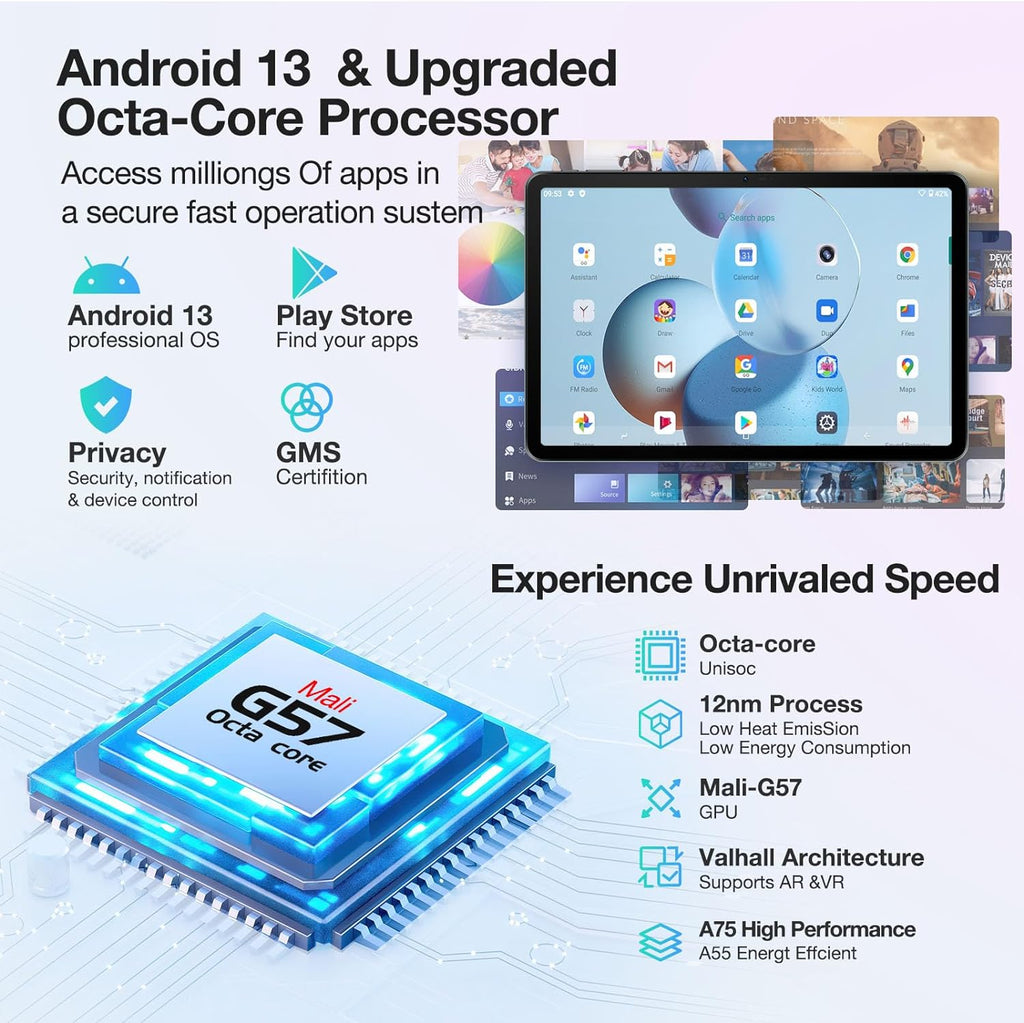 - 【13MP+8MP Cameras & Widevine L1】 With Widevine L1 certification, android tablet can deliver high-quality video and audio without any lag or buffering. Tablet T30S comes equipped with 13MP rear and 8MP front camera, making it perfect for capturing stunning photos and videos. Gaming tablet features four powerful speakers that provide rich, immersive sound for movies, music, and more. T30S android tablet has passed Google certification, you can rest assured that our tablet will be fully compatible with apps.