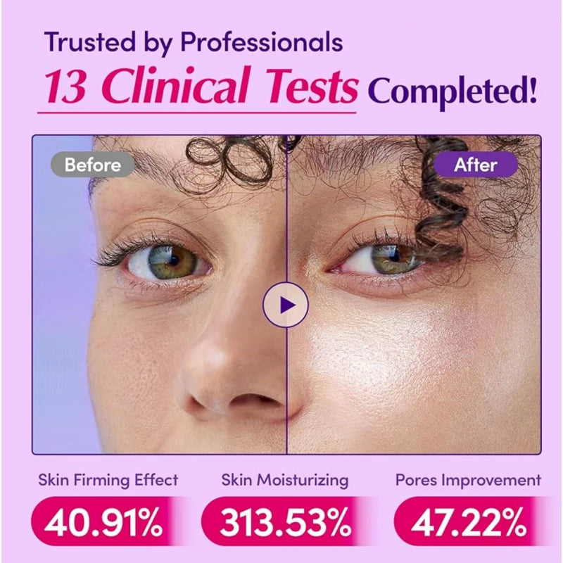 Backed by 13 clinical tests, this serum delivers visible improvements in firmness, hydration, and pore refinement. Perfect for all skin types including sensitive, oily, dry, and acne-prone skin.