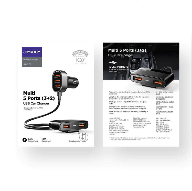 Order Joyroom JR CL03 Multi 5 Ports USB Car Charger - Black now, to get same-day delivery inside Amman, within 24 hours outside Amman and other regions.