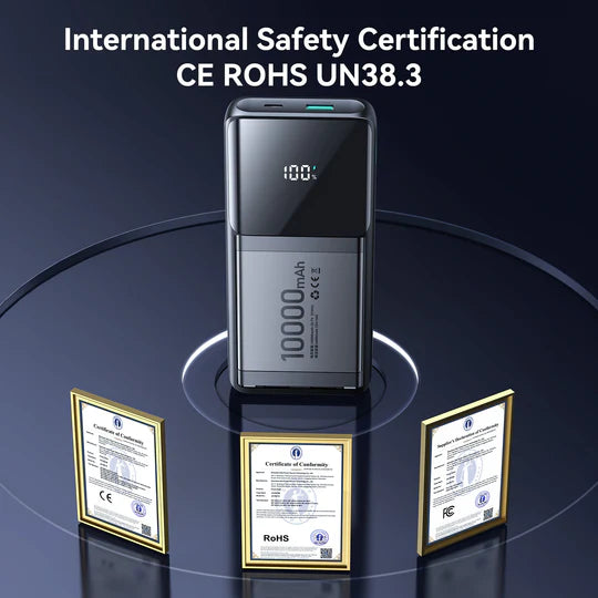 The JOYROOM JR-PBF19 is a 10,000mAh power bank designed for reliable, on-the-go charging. Equipped with a clear display, it provides real-time battery status for precise power management. Integrated cables ensure convenience and compatibility with multiple devices, eliminating the need to carry extra cords. Its compact design combines portability with robust capacity, making it an essential accessory for professionals who require dependable power throughout their day.