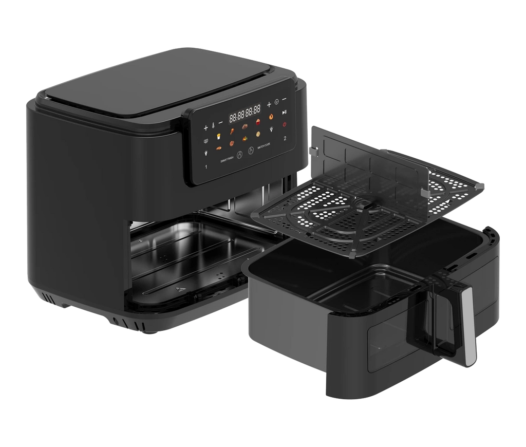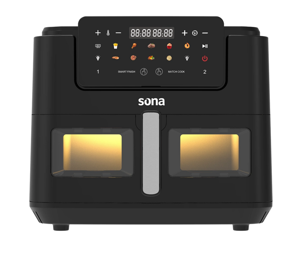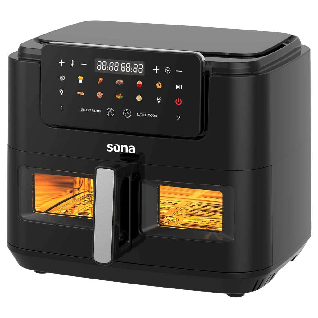 The Sona 10L Air Fryer combines substantial capacity with powerful 2600W performance, engineered for consistent, restaurant-quality results. Its transparent divider compartment enables versatile meal preparation—cook proteins and vegetables simultaneously while maintaining distinct flavors and textures. The expansive 10-liter chamber accommodates larger batches, reducing cooking time for busy households. Advanced air circulation technology ensures even heat distribution and optimal crispness with minimal oil dependency. Finished in sophisticated black, this unit integrates seamlessly into contemporary kitchens while delivering professional-grade functionality for everyday cooking demands.