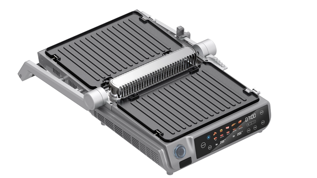 The 180° flat opening doubles the cooking surface, making it ideal for family meals. The digital touchscreen display provides precise temperature and time control for consistent cooking.