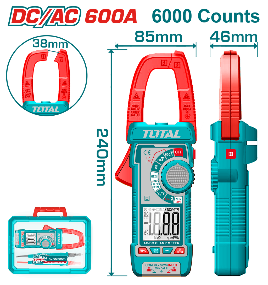 Order TOTAL DC/AC Clamp Meter 600A, TRMS 6000 Counts with Temperature now, to get same-day delivery inside Amman, within 24 hours outside Amman and other regions.