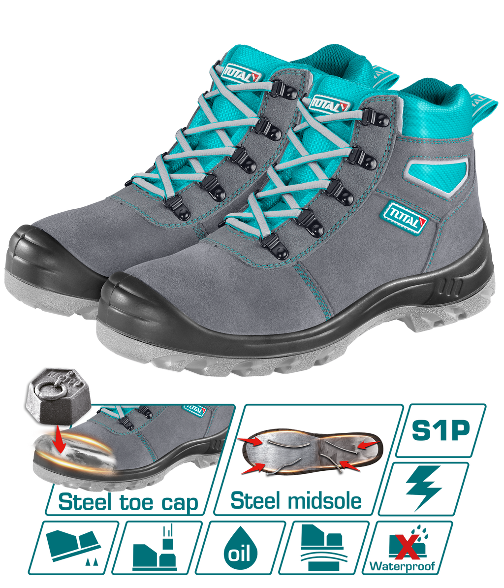 TOTAL Chamois Safety Boots S1P Steel Toe | TSP201S1P offer reliable protection for demanding work environments. Featuring a steel toe cap, these boots safeguard against impact and compression hazards. The S1P rating ensures additional resistance to penetration and anti-static properties, enhancing workplace safety. Designed for comfort and durability, their robust construction supports prolonged use without compromising on foot protection. Ideal for professionals seeking certified safety footwear that combines strength, safety, and practicality.