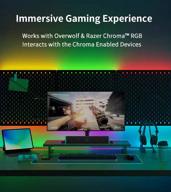 The LED strip Pro is easily compatible with popular gaming platforms such as Chroma RGB and Overworlf. Connect to peripherals and see how the lights react to the game in real time!