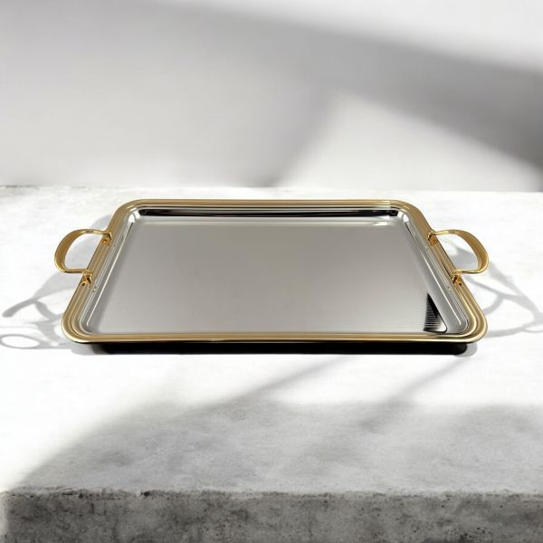 Enhance your table with the Zolten Rectangular Tray in silver and gold. Its elegant dual-color design is ideal for daily use or special occasions.
